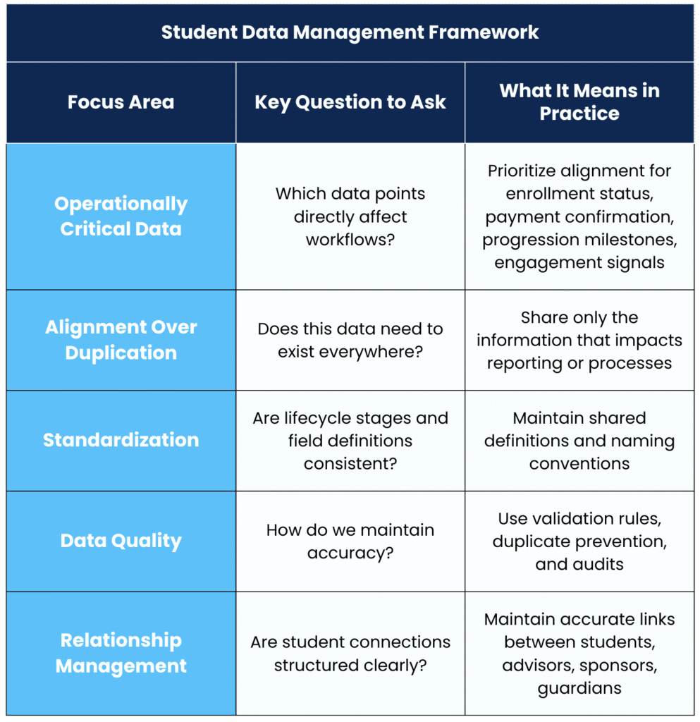 Beyond system alignment, a few core practices help institutions manage student information more effectively over time.