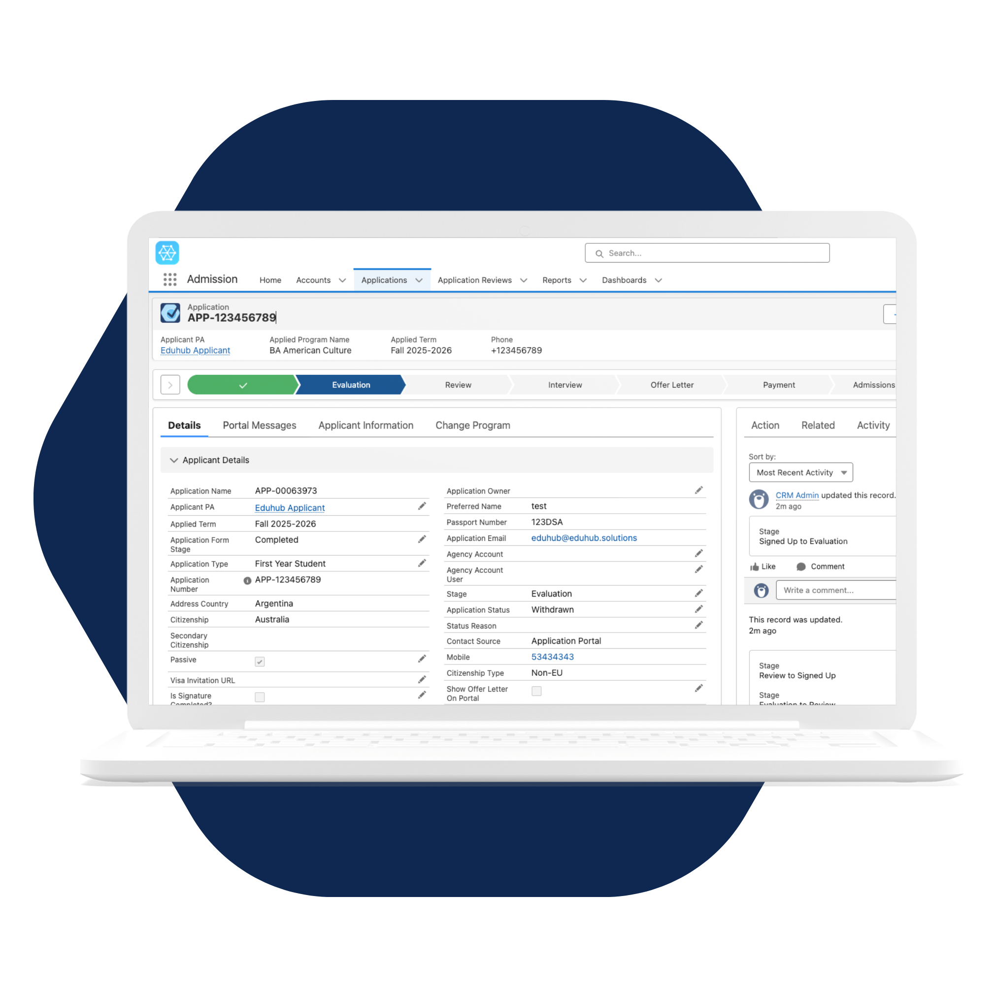- Seamlessly integrated into Eduhub Admission workflows