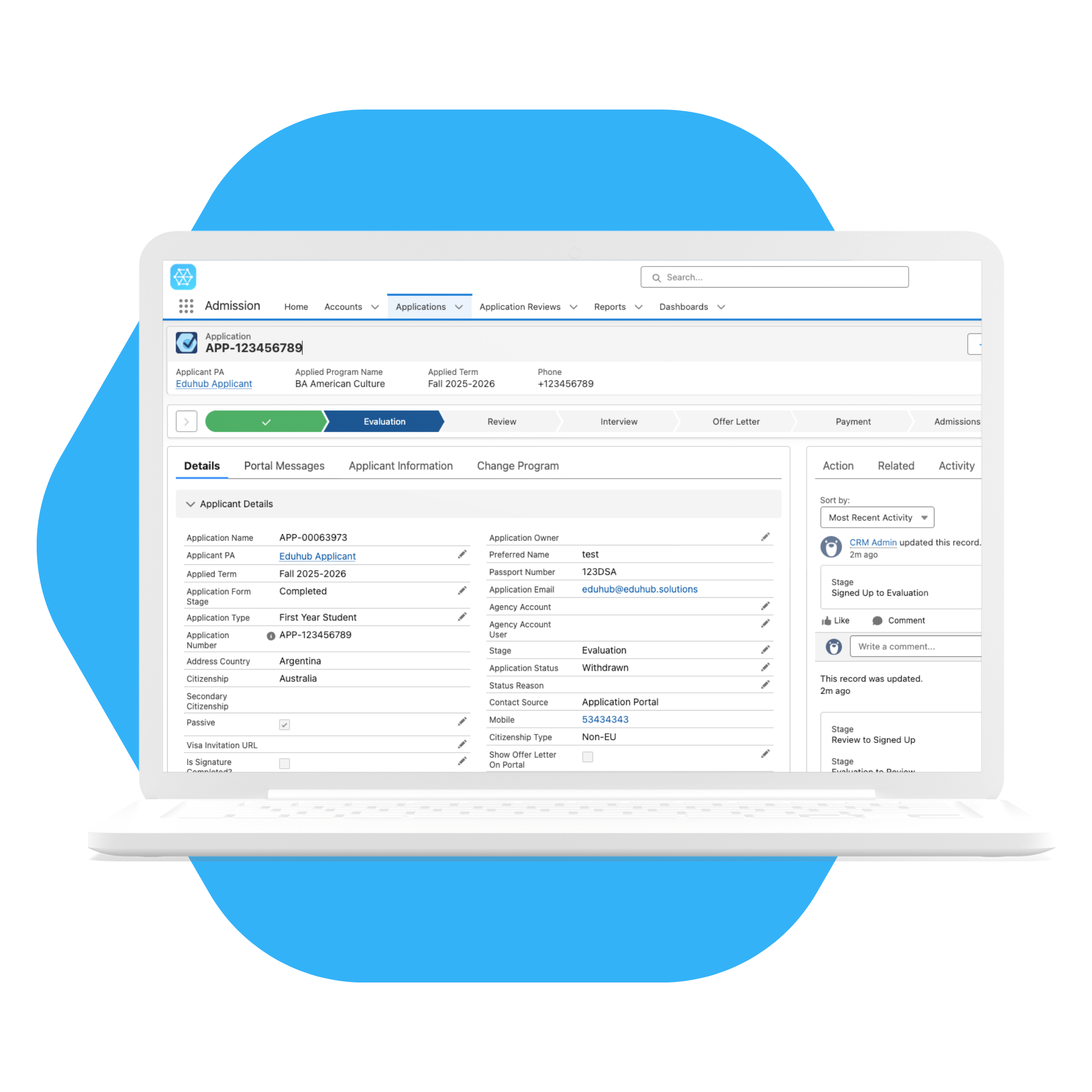 Powered by Salesforce, Eduhub elilimantes fragmented tools and delivers a seamless, data-driven experience across every stage.